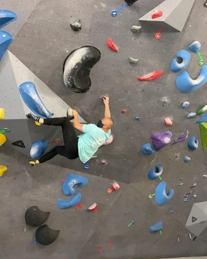 Every climb (aka "problem" or "bloc") is uniquely built to challenge your agility, strength, and mental flexibility. Some problems send you straight up, some problems send you sideways. Some problems climb up a shallow incline, some send you through the steep part of a cave! Regardless of the wall, you'll find different problems suited to every level of experience.